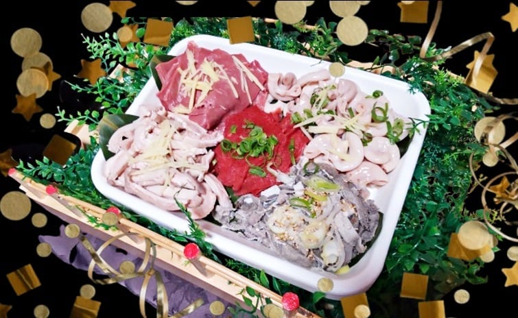 肉刺し盛合わせ5人前は、選りすぐりの逸品5種をお楽しみいただける贅沢な盛り合わせです。センマイ、コブクロ、ガツ、ハツ、そして特撰馬刺しが一皿に集結し、どれも火入れ済みなので、安心してお召し上がりいただけます。職人技が光るこの盛り合わせは、パーティで楽しめる上質な肉料理として、特別な集まりや大切なひとときのメインディッシュに最適です。